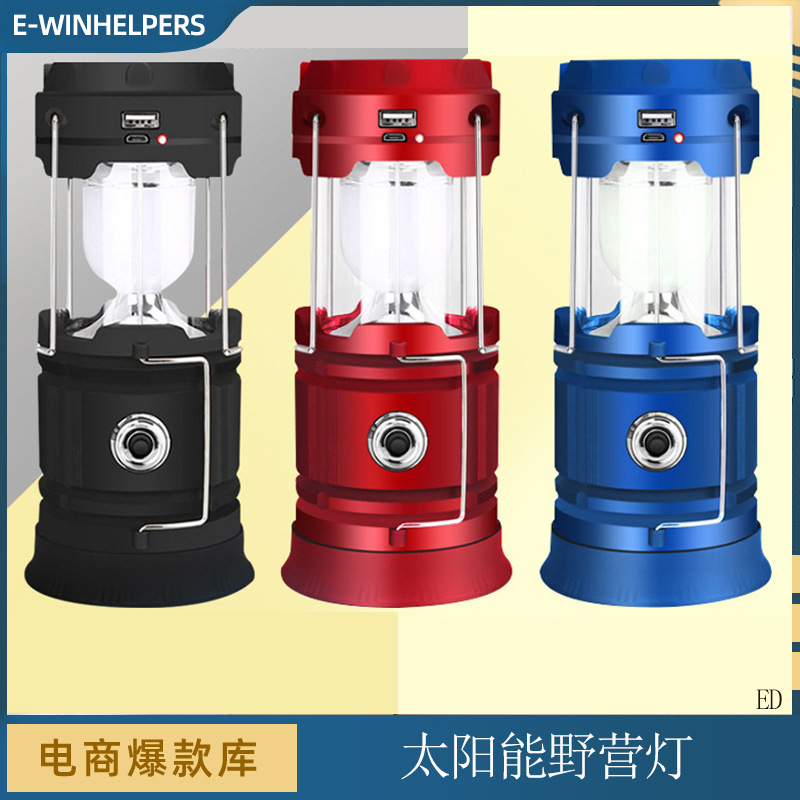 Lampu darurat LED portabel USB, penerangan dapat diisi ulang untuk berkemah luar ruangan, gunung tenaga surya