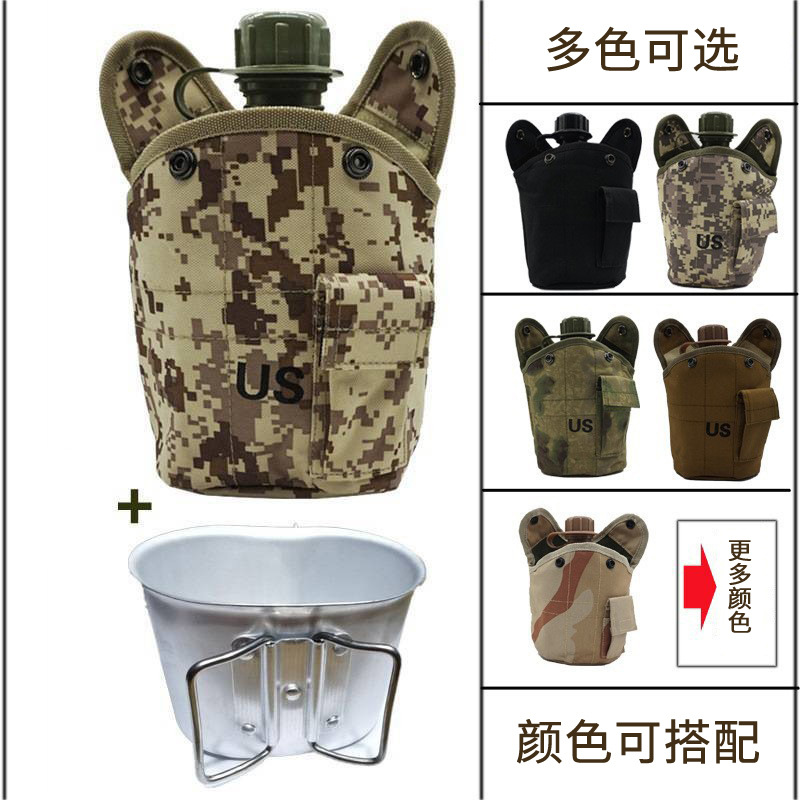 Botol air tentara Amerika dengan kotak makan siang, tiga buah polimer PE taktis ketel berkemah mendaki gunung olahraga luar ruangan