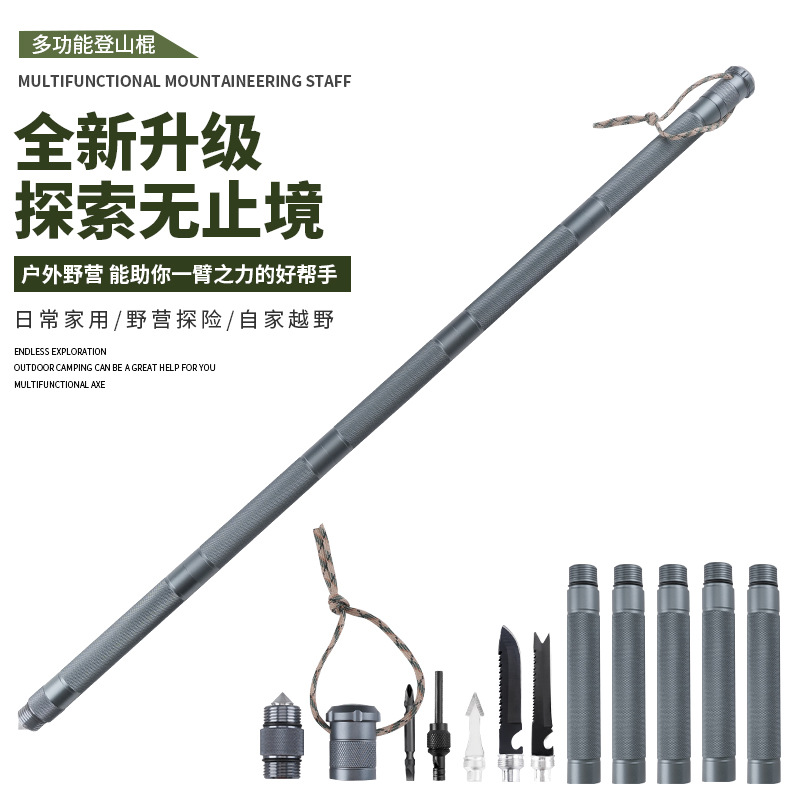 Set Perlengkapan Berkemah Obeng Luar Ruangan Pendakian Multifungsi Tongkat Mendaki Gunung Lipat Tongkat Pelindung Tubuh Tongkat Pelindung