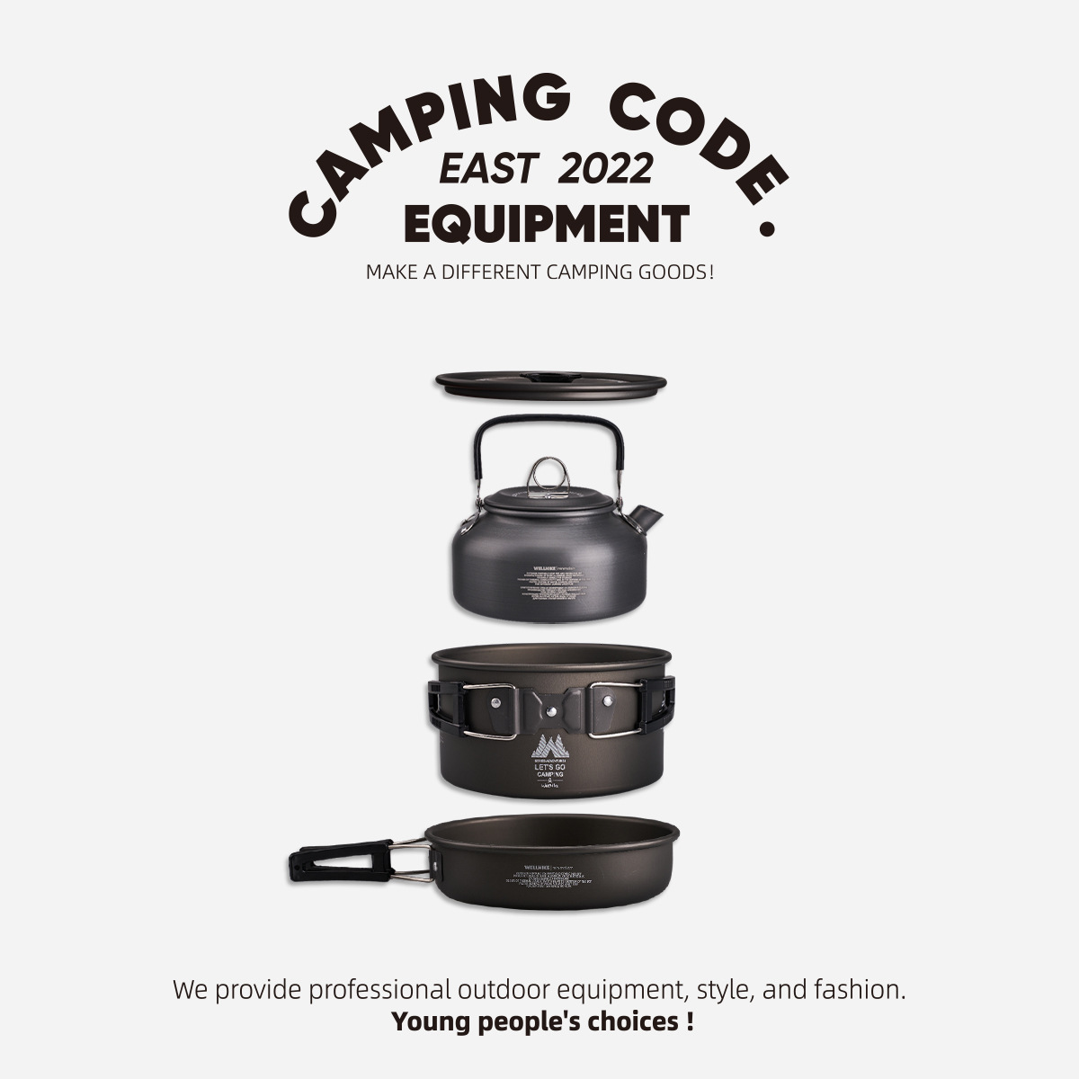 Set Pot Berkemah Luar Ruangan 1-2 Orang Peralatan Masak Berkemah Portabel Panci Kemah Piknik Panci Masak Panci Air