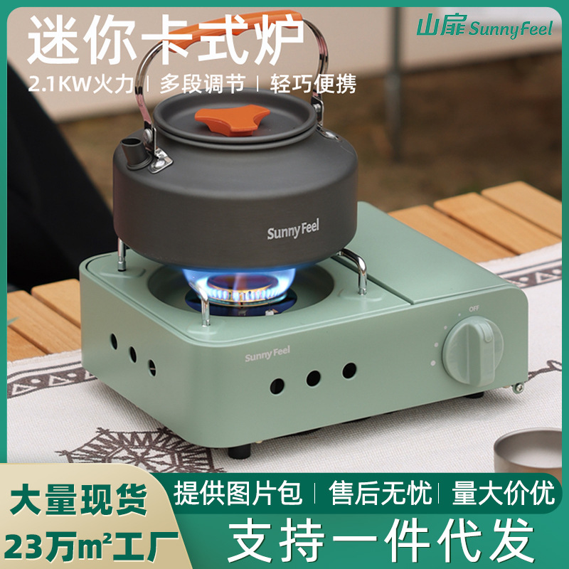 SunnyFeel kompor gas mini portabel, kompor gas gunung luar ruangan berkemah rumah penggunaan ganda