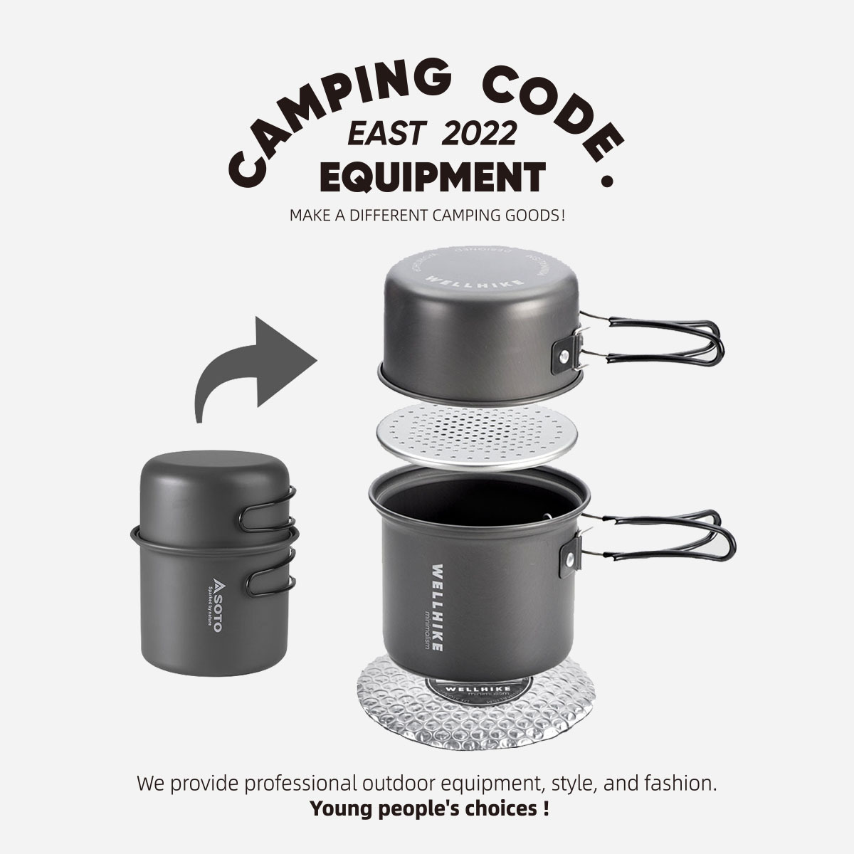 WELLHIKE Peralatan Masak Berkemah Luar Ruangan 2 Set Panci Peralatan Panci Luar Ruangan Portabel Paduan Aluminium Lipat Satu Orang Ringan
