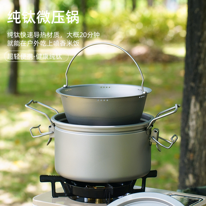 纯钛户外微压锅煮饭锅家用带内胆露营轻便煮饭神器可明火蒸煮钛锅