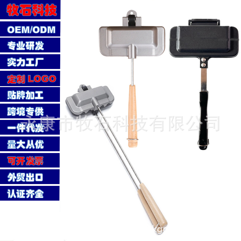 Wajan penggorengan dua sisi gas luar ruangan, cetakan sandwich roti panggang, wajan penggorengan anti lengket yang dapat dilepas