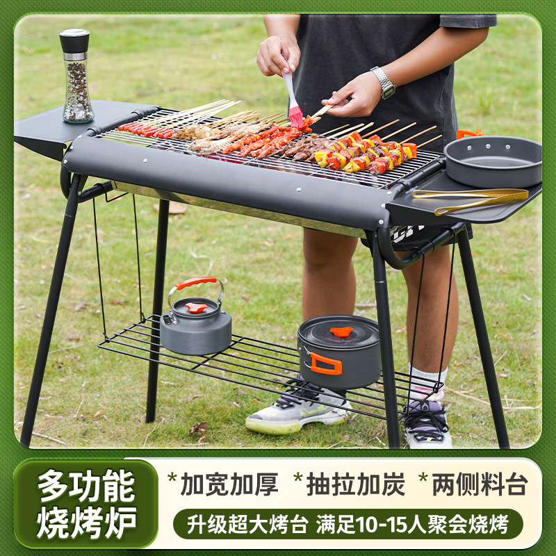 Kompor barbekyu lipat portabel luar ruangan, Pemanggang arang barbekyu Set lengkap rumah tangga kompor karbon oven grosir