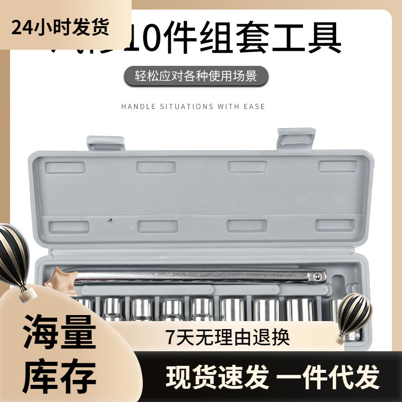 Alat perbaikan mobil elektrik, set kunci pas soket roda tiga kombinasi multifungsi 10 set sepeda motor