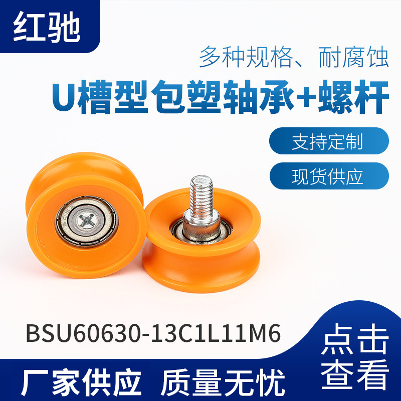 现货U槽型包塑轴承带螺杆滚轮轴承 厂家批发包塑轴承