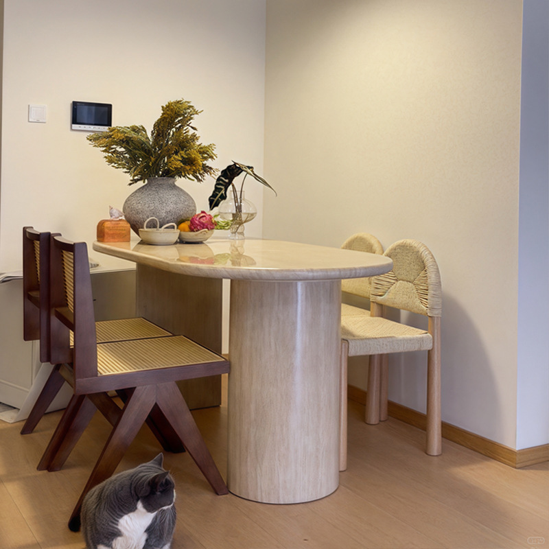 Meja Makan ringan gaya Krim Perancis bulgley marmer oval meja makan desainer pola gua meja makan apartemen kecil meja Pulau