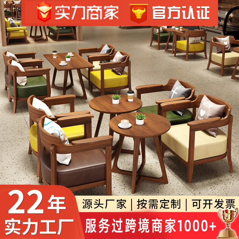 Meja negosiasi kayu Solid santai, Meja ganda dan kursi kedai kopi meja restoran Barat dan kursi makanan penutup toko teh susu meja dan kursi