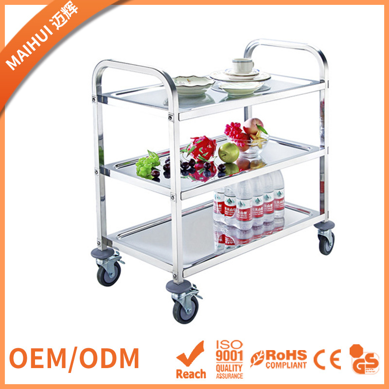 Kursi makan mobil baja tahan karat komersial restoran troli seluler hotel restoran keranjang 304 trailer ganda tiga lapis troli