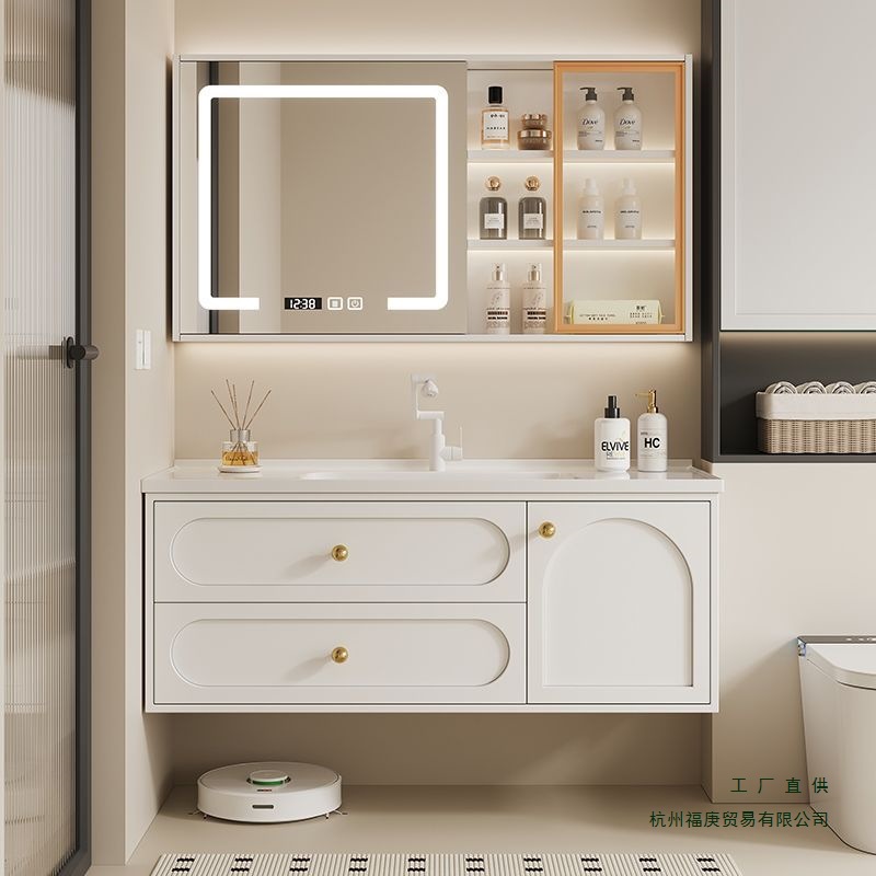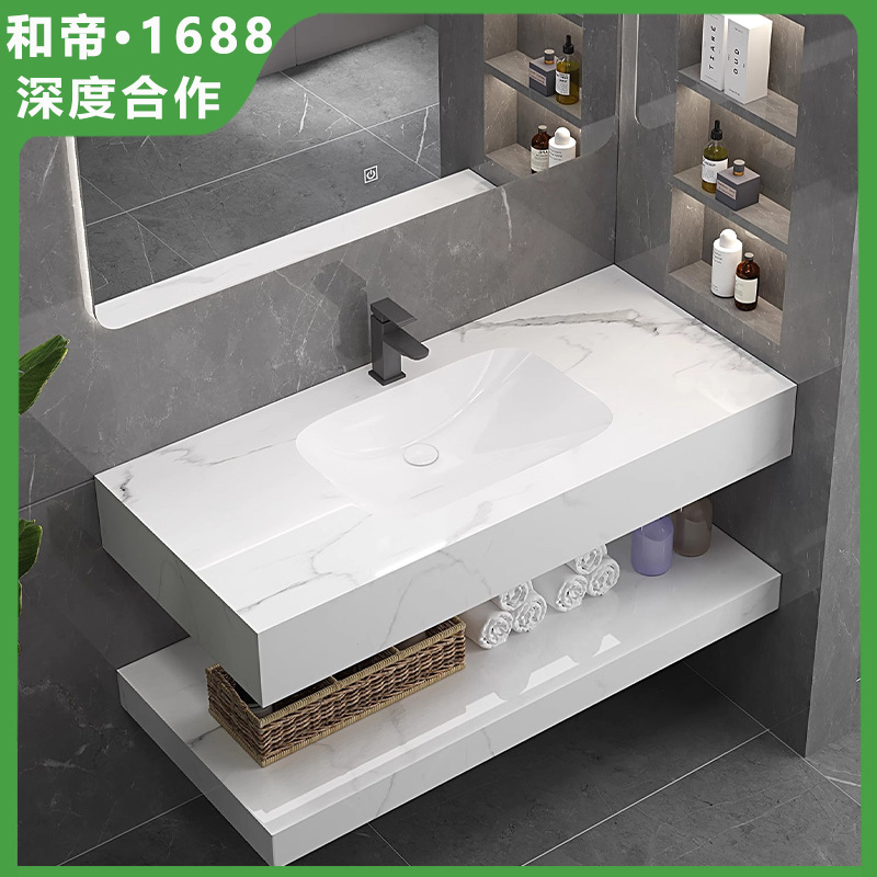 Panel Batu Berlengkung Panas Keramik Satu Tubuh Satu Set Lemari Kamar Mandi Kombinasi Modern Meja Cuci Tangan Lemari Baskom Cuci Wajah