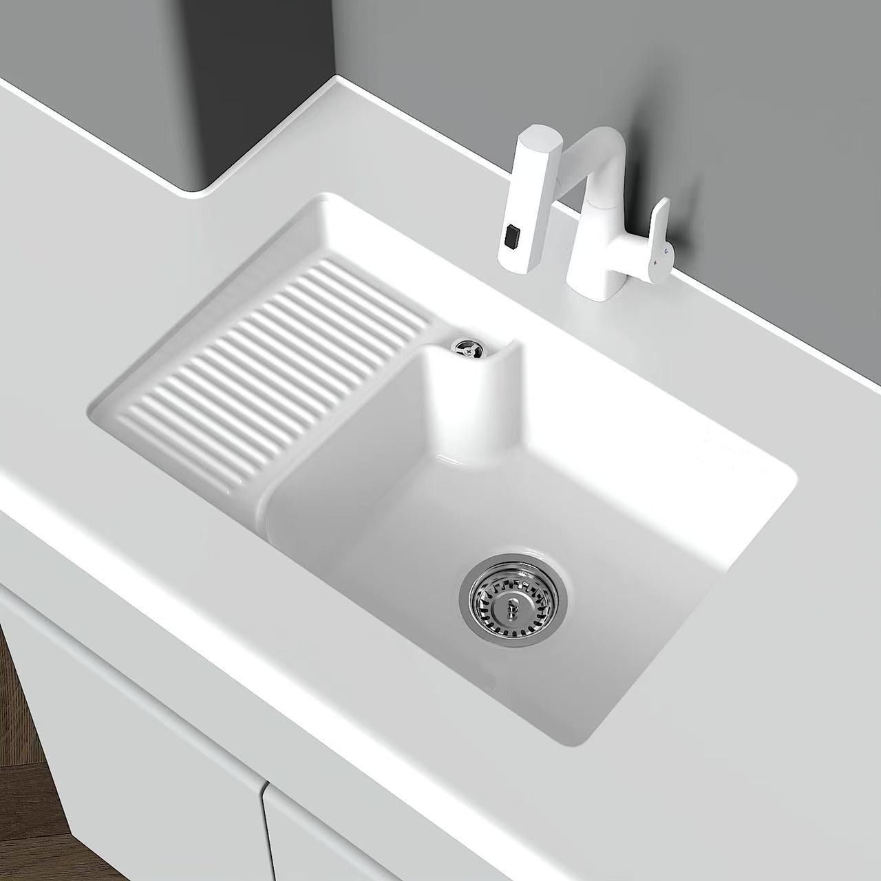 Cross-border eksklusif untuk Foshan keramik terintegrasi baskom disesuaikan dekorasi rumah kamar mandi kabinet bak cuci batu kuarsa baskom terintegrasi grosir