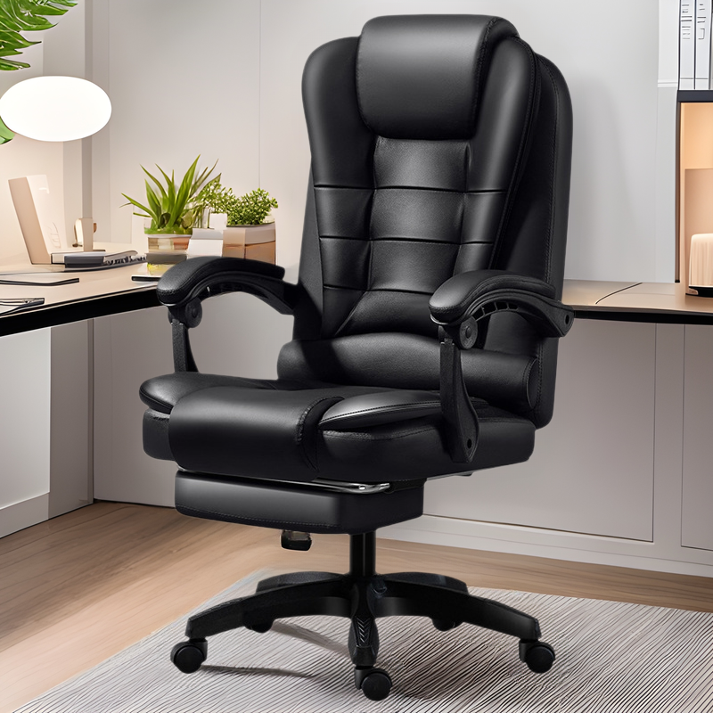 Kursi kulit asli boss kursi putar, kursi putar kantor nyaman duduk Panjang komputer rumah, kursi putar kelas atas
