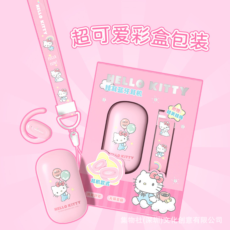 Sanrio HelloKitty Keren Lomi Headphone Bluetooth OWS Terbuka dengan Tali Gantung Telinga