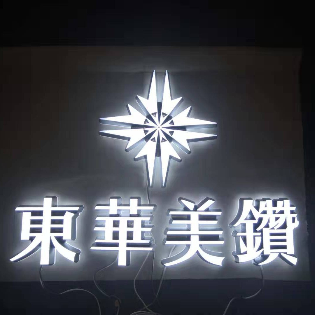 Papan Nama karakter bercahaya, papan reklame lampu LED, papan reklame karakter stainless steel, kristal akrilik mini