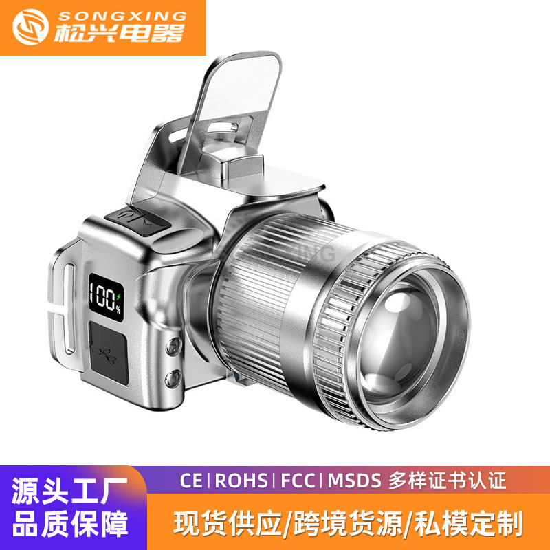 Lampu kepala patrol memancing malam, cahaya Induksi kuat terpasang di kepala lampu patroli pengisian daya ponsel digital listrik terang tembakan panjang kepala khusus luar ruangan