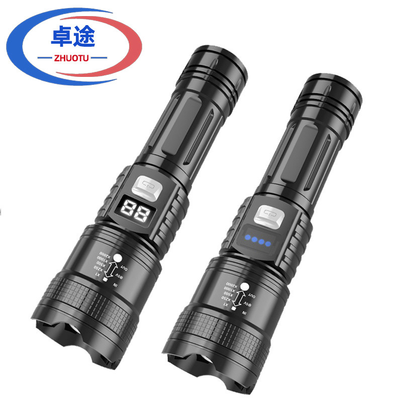 跨境强光数显手电筒变焦远射充电户外便携家用照明灯夜钓应急手电