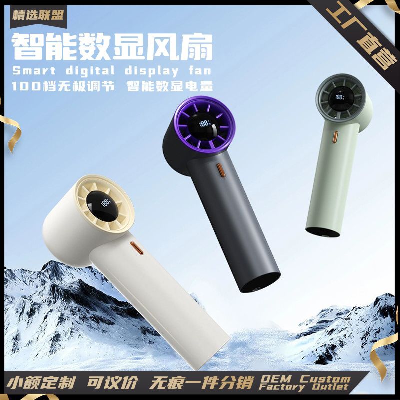 Kipas Genggam Layar Digital Cerdas Kipas Pengisian USB Kecepatan Tinggi Luar Ruangan Mini Portabel LED Kipas Daya Pakai Layar Digital