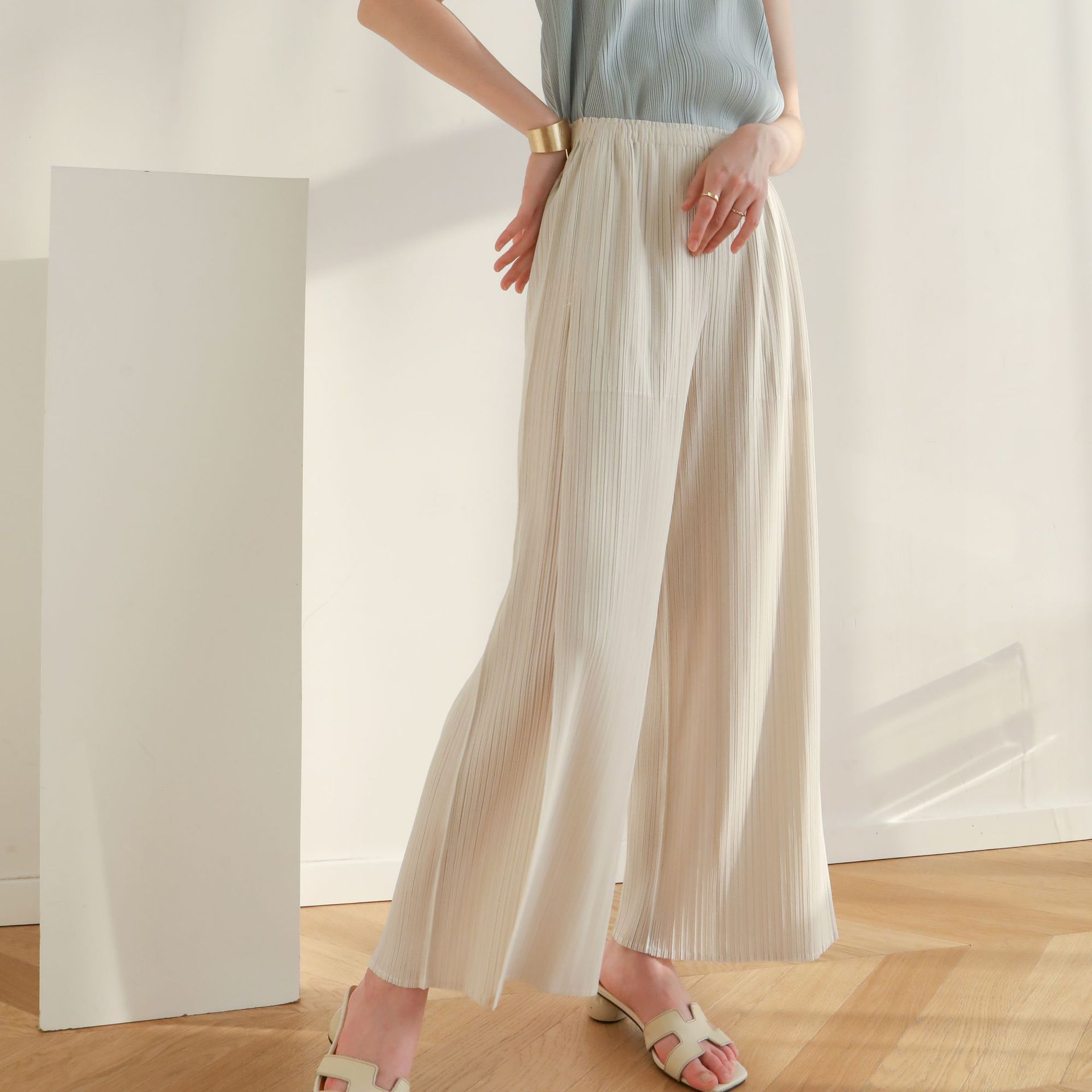 Pasokan langsung dari pabrik 2024 musim gugur, musim semi dan musim panas celana sembilan titik lurus longgar ukuran besar serbaguna kasual lipit berkelas