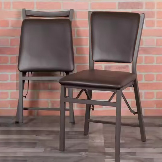 金属折叠餐椅酒店宴会铁艺一体折叠椅子批发生产