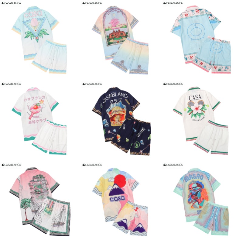 Setelan kemeja lengan pendek pria, pakaian pantai hip hop jalanan tinggi mewah 2024