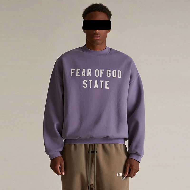 FALL24 FOG Multi-line ESSENTIALS HH Merek Trendi Huruf Bordir Berlapis Bulu Musim Gugur dan Musim Dingin Pria dan Wanita Leher Bulat Kaus