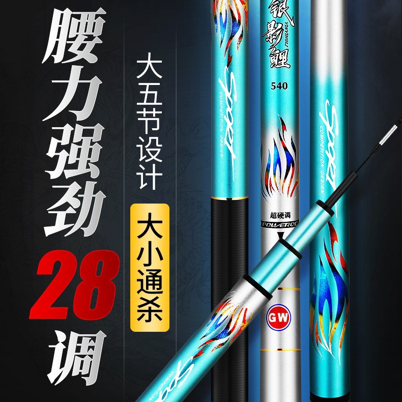 Guangwei tongkat pancing perak ikan karper, tangkai tangan Super ringan super keras 28 dapat disesuaikan Taiwan untuk memancing ikan karper liar Memancing barang besar