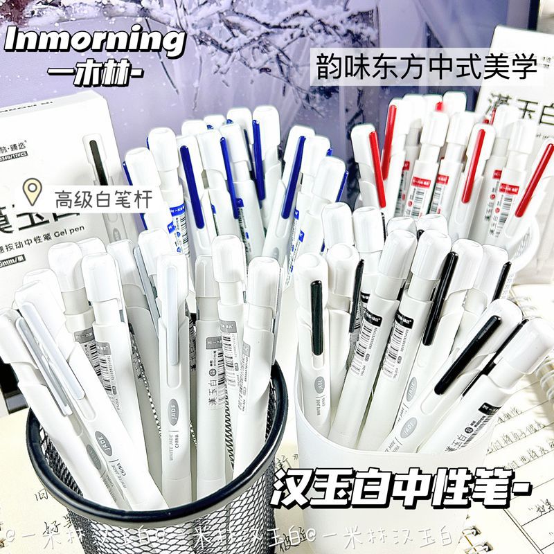 一木林汉玉白按动中性笔红笔高颜值速干0.5m学生简约考试CS黑色笔