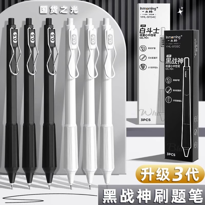 一木林黑战神低重心速干st笔头按动中性笔高颜值学生考试用刷题笔