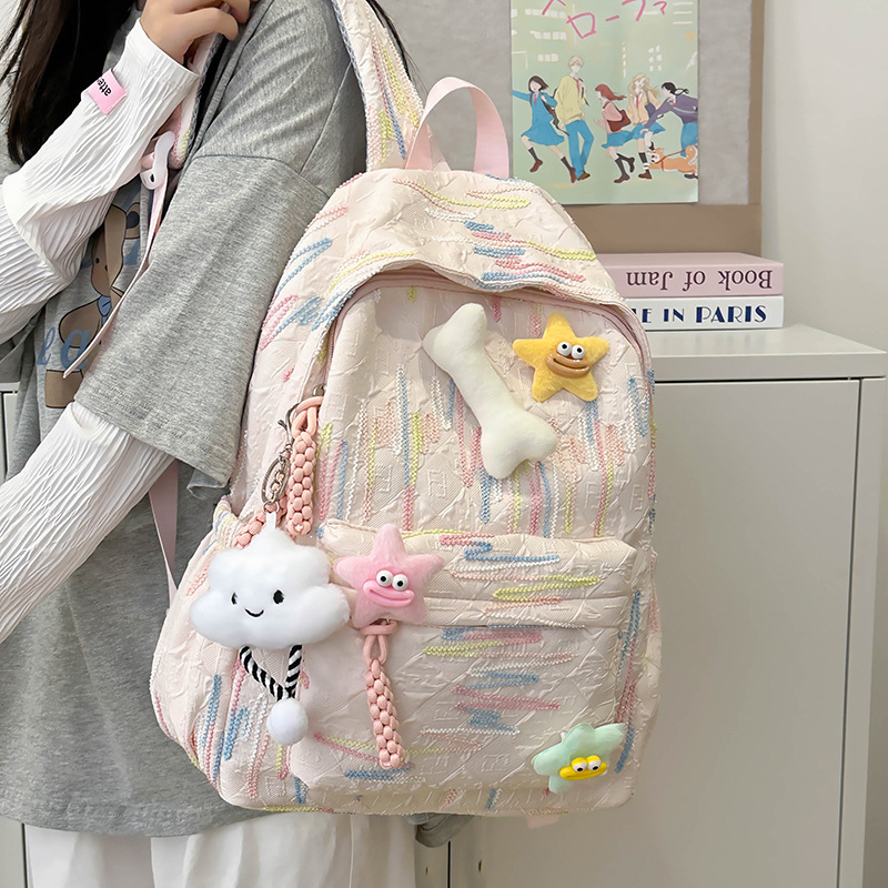 Tas Sekolah Tas Ransel Model Korea Wanita Nilai Wajah Tinggi Tas Sekolah Warna Warna-Warni Garis-garis Tas Ransel Kasual Tas Bepergian Gadis Lucu