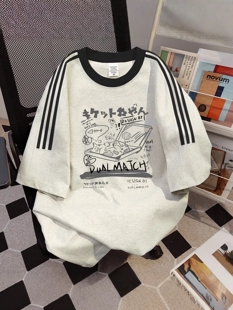 Kaus Lengan Pendek Motif Cetak Huruf Gaya Desain Katun Murni Gaya Jepang Atasan Lengan Setengah Longgar Model Baru Musim Panas 2025 Wanita Instagram Trendi