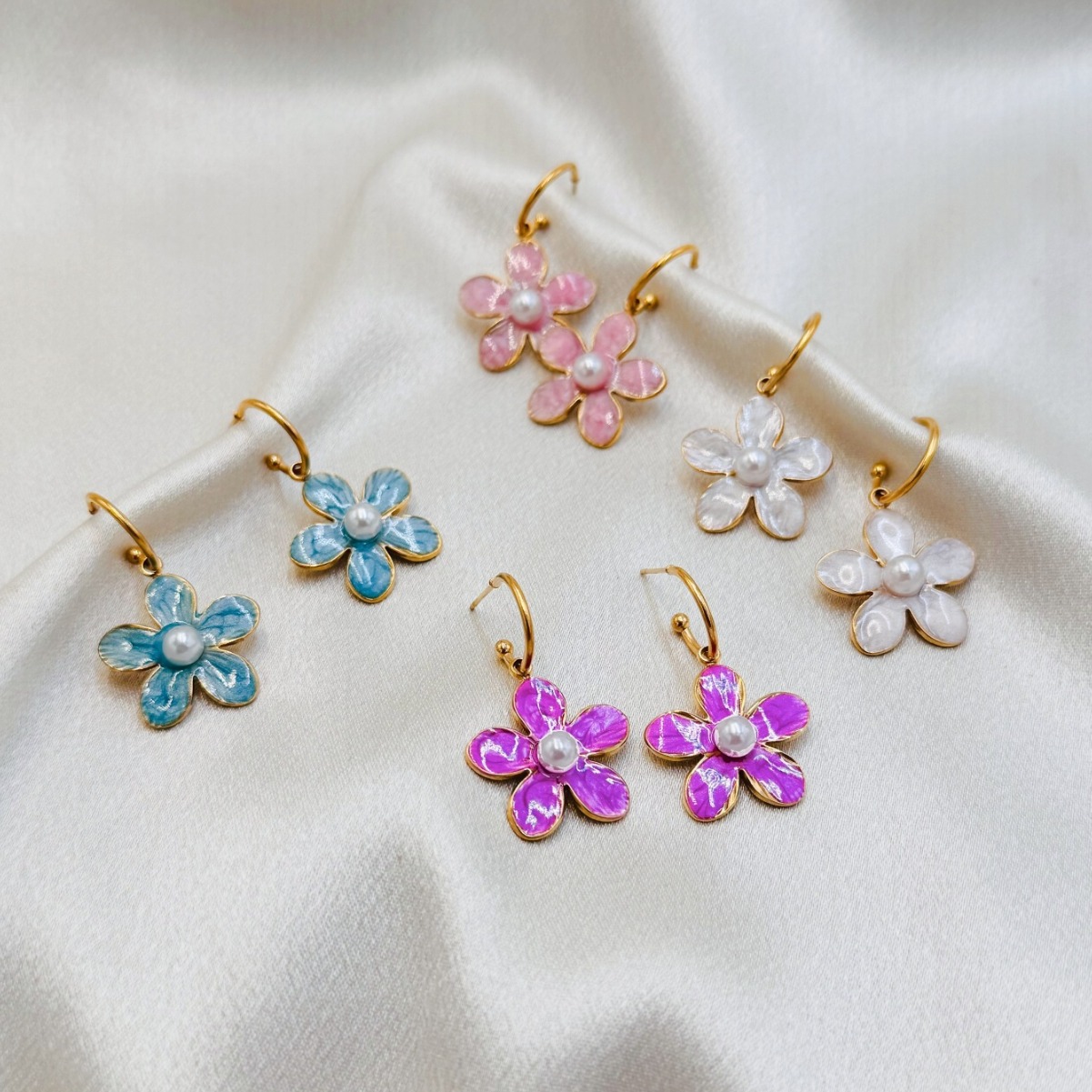 不锈钢滴油花朵耳饰珍珠装饰diy耳环森系设计耳环