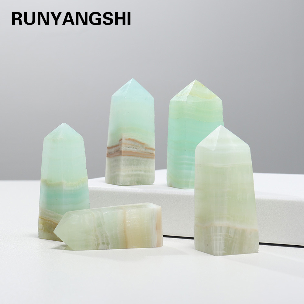 Pilar Karibia kristal alami yang dipoles dengan tangan empat tepi kolom persegi runcing tunggal hadiah kerajinan dekorasi rumah