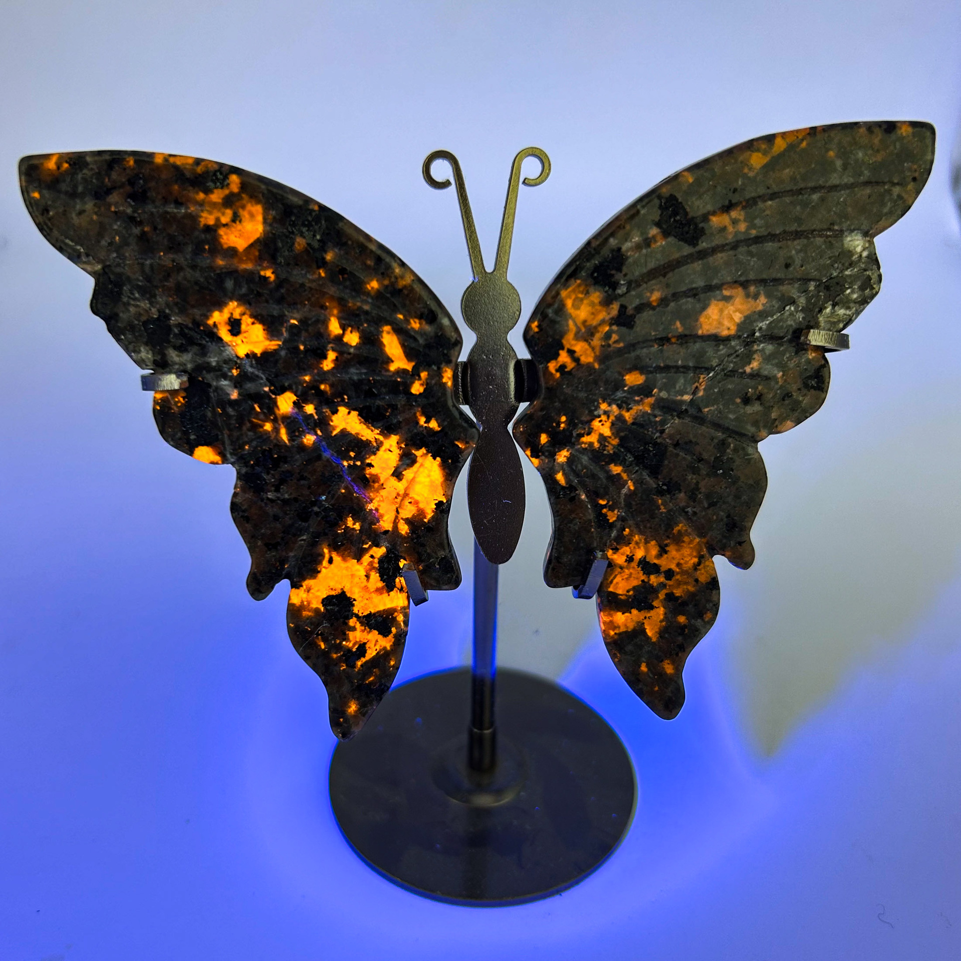 天然家居装饰大紫黄白水晶蝴蝶翅膀摆件(含底座)