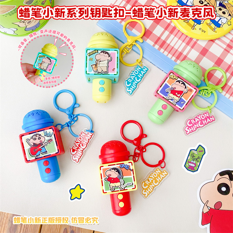 正版蜡笔小新麦克风系列可爱钥匙扣女精致书包包挂件卡通公仔挂饰