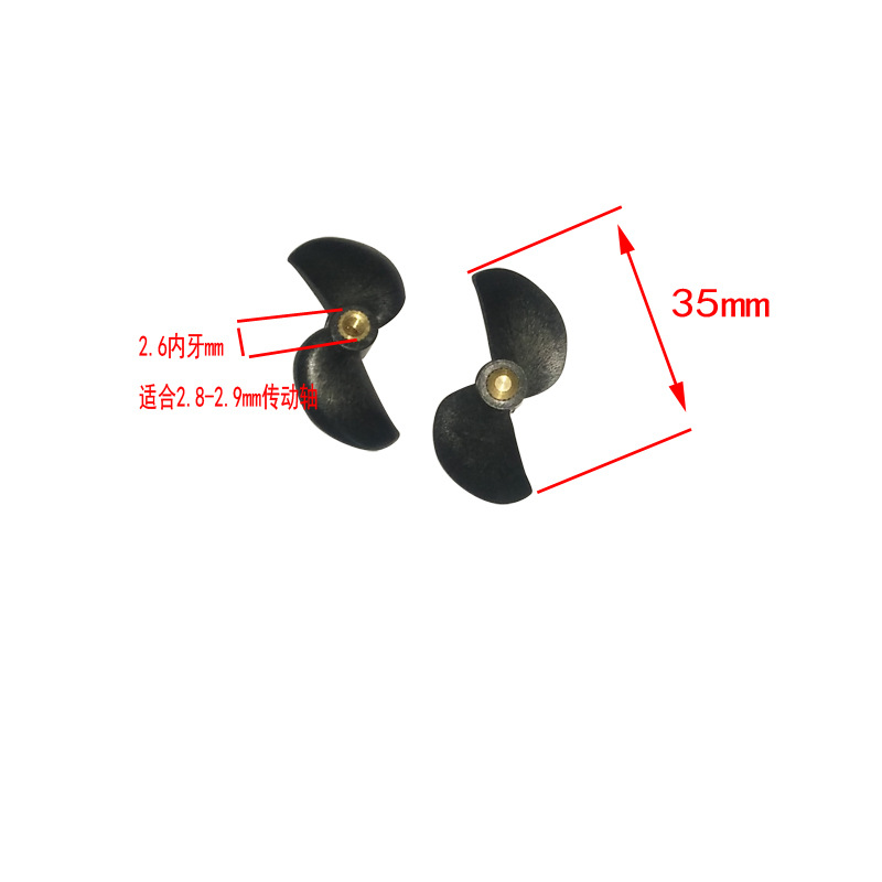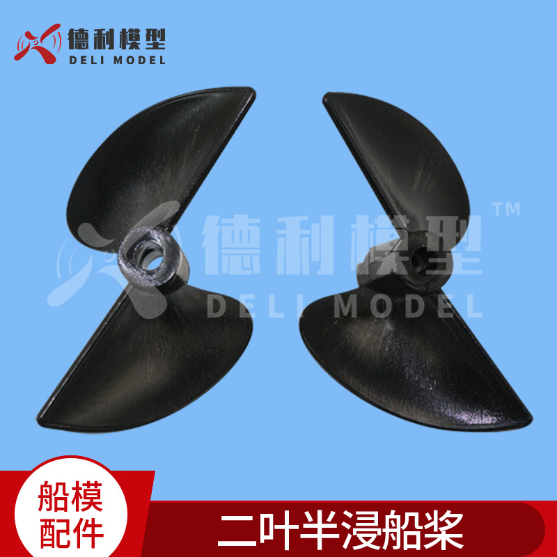 船模二叶正反螺旋桨D70*P1.4二叶半浸船桨船桨黑色亮光固定翼女孩