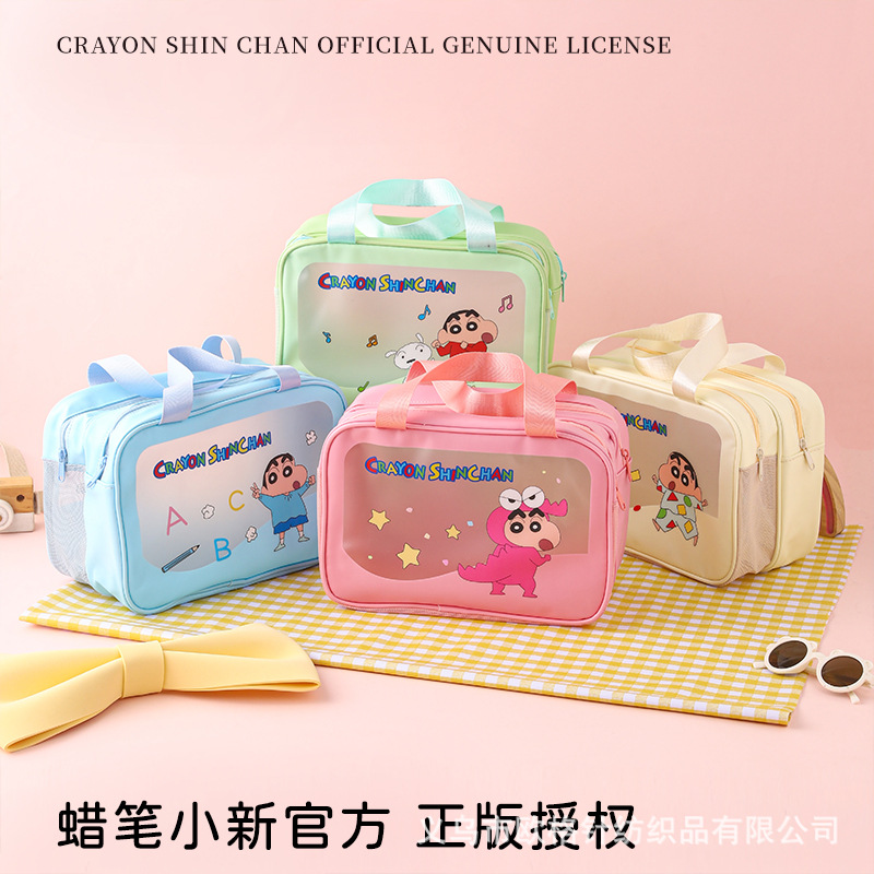 Tas Kosmetik Tahan Air Kapasitas Besar Resmi Asli Crayon Shinchan Tas Penyimpanan Mesh Dua Lapis Dipisahkan Kering dan Basah