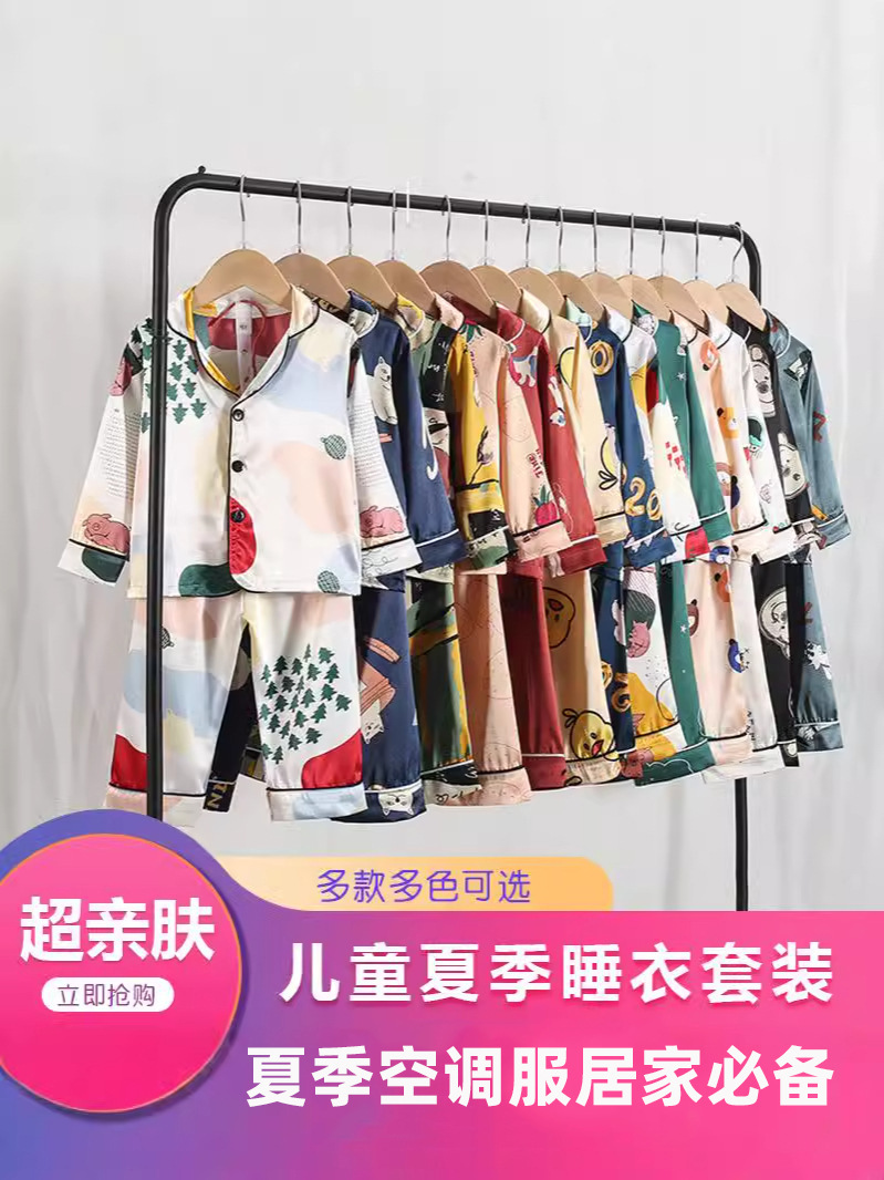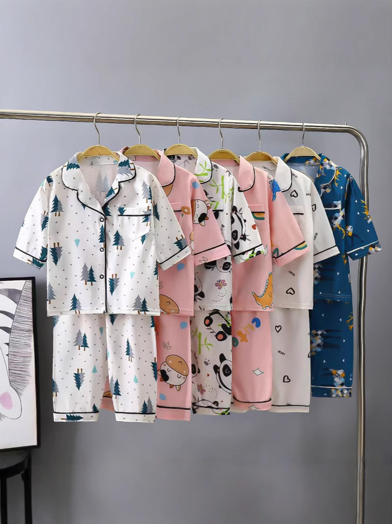 Pakaian Anak-anak Musim Panas Pakaian Rumah Kerah Terbalik Setelan Tipis Celana 3/4 Lengan 3/4 Pakaian AC Anak Laki-laki dan Perempuan Model Baru