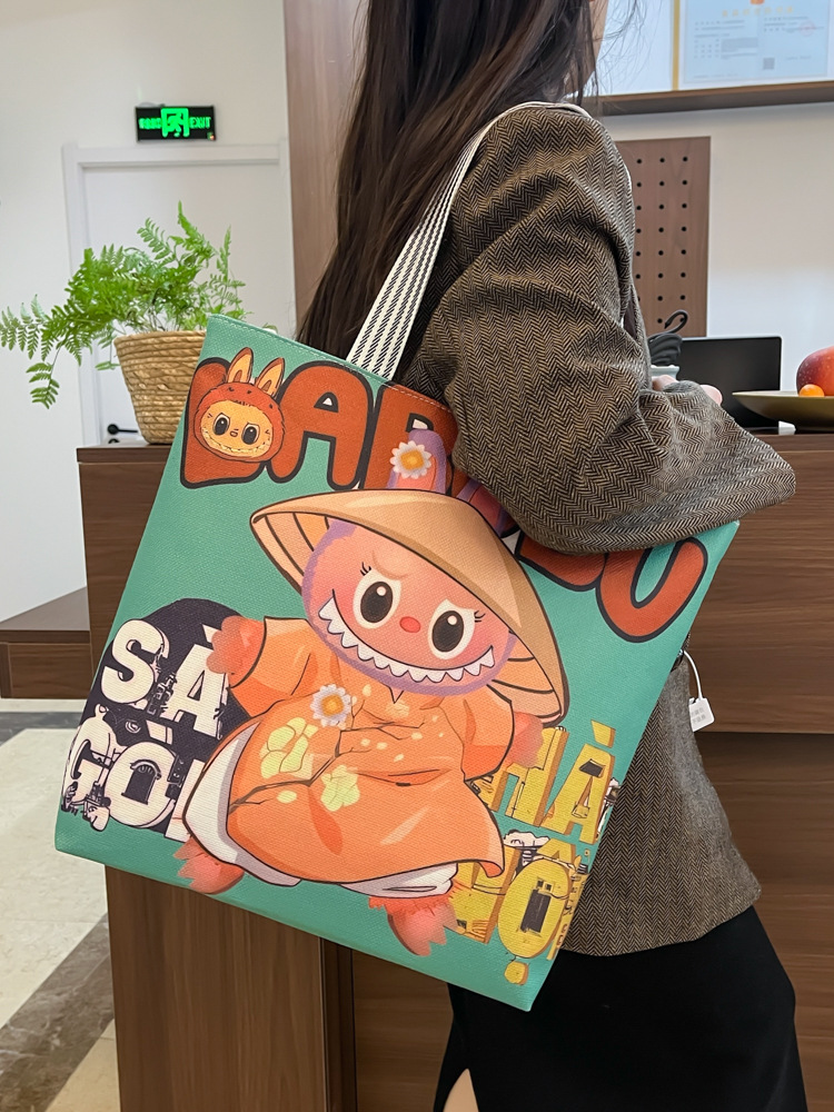 拉布帆布包大容量女包卡通补课包单肩包手提2025新款托特多口袋