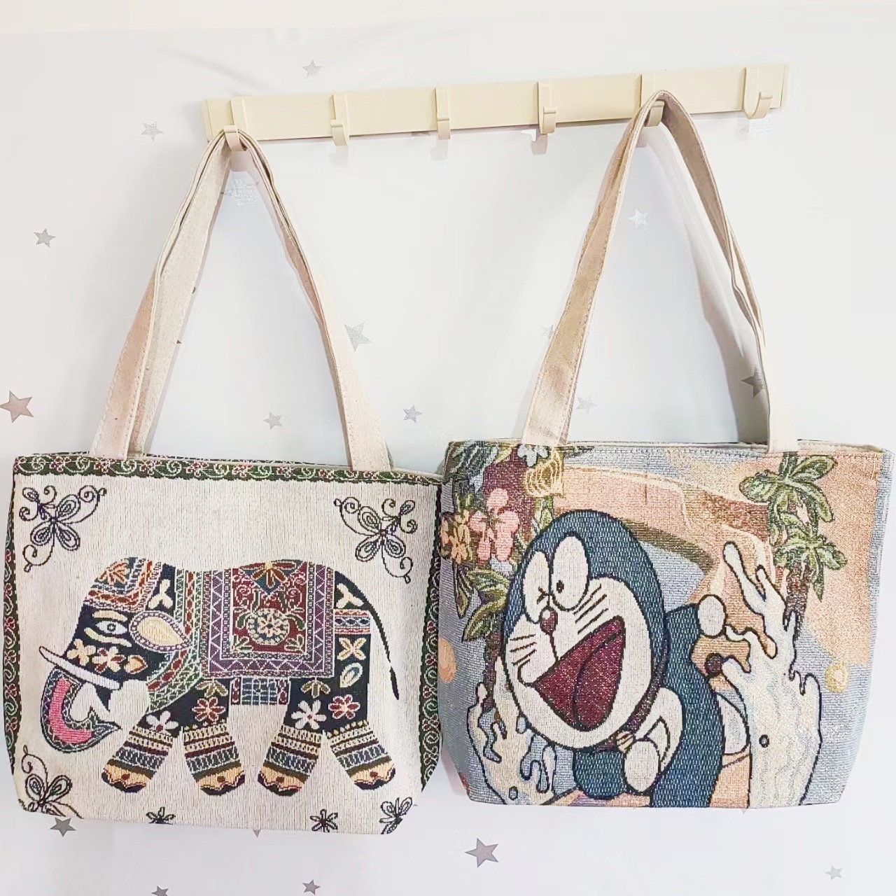 Tas Bahu Tunggal Artistik Model Baru Trendi Tas Tote Jinjing Tas Belanja Kanvas Tas Tote Wanita Kapasitas Besar