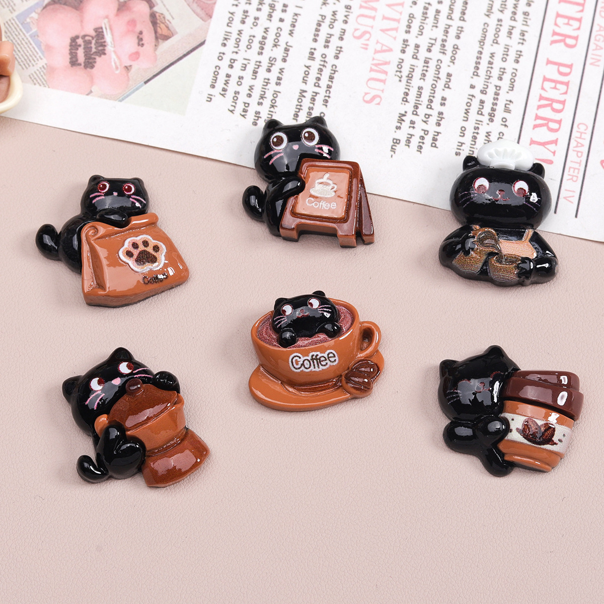 卡通diy树脂配件饰品黑猫咖啡奶油胶发夹手机壳鞋扣钥匙扣吊坠配
