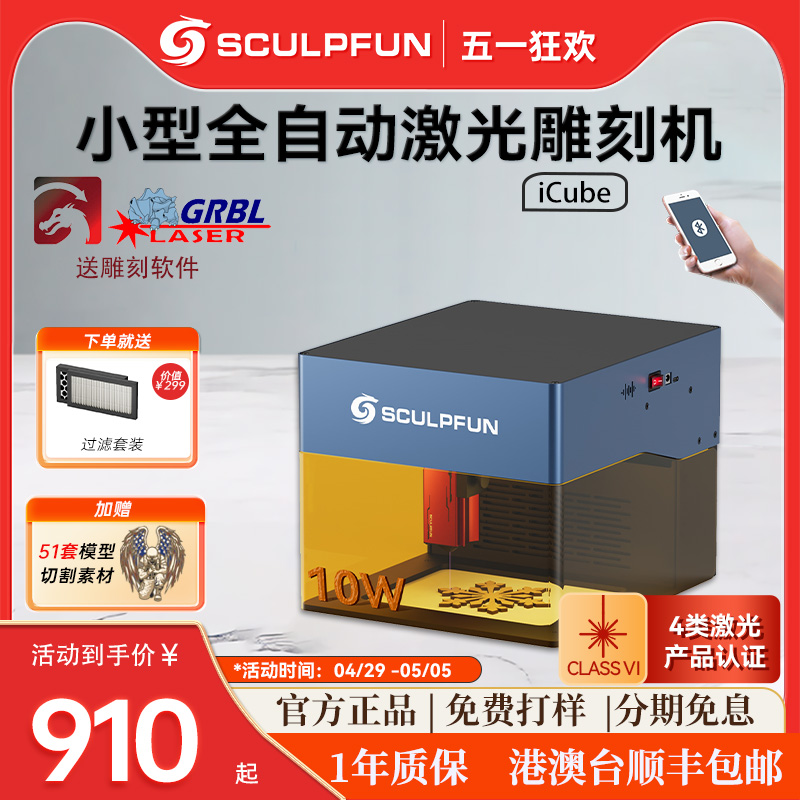 XDSCULPFUN iCube Laser Mengukir Mesin Desktop Portabel Kayu Blok Kulit Karton Logo Kayu Potong