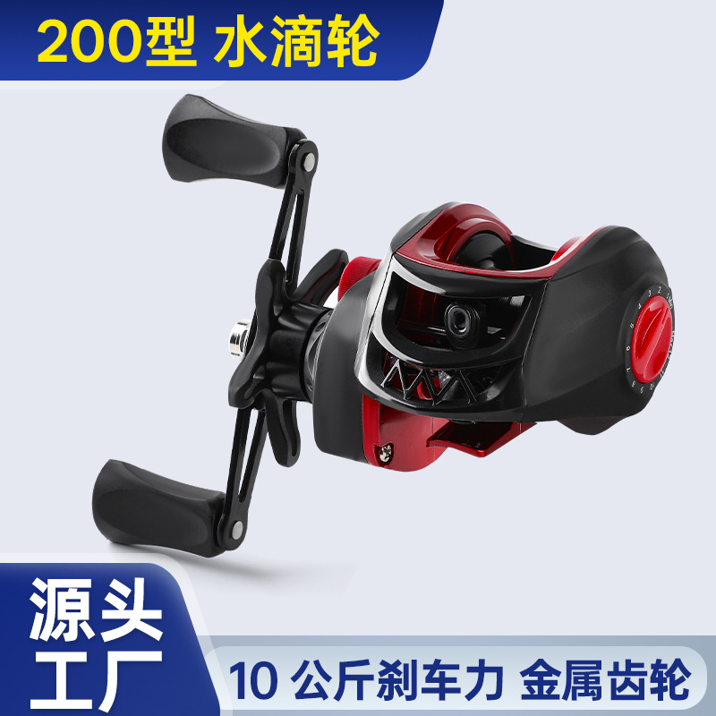 Roda pancing jalan, roda pancing Asia, anti-ledakan, logam hitam, merah, roda jatuh air, tiang Asia, tembakan panjang, roda pancing rakit, mulut kuda, manik-manik