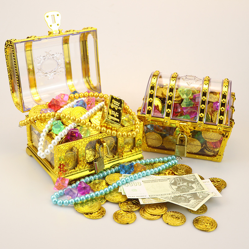 儿童游戏道具过家家寻宝藏玩具仿真假海盗金币宝箱宝石项链套装
