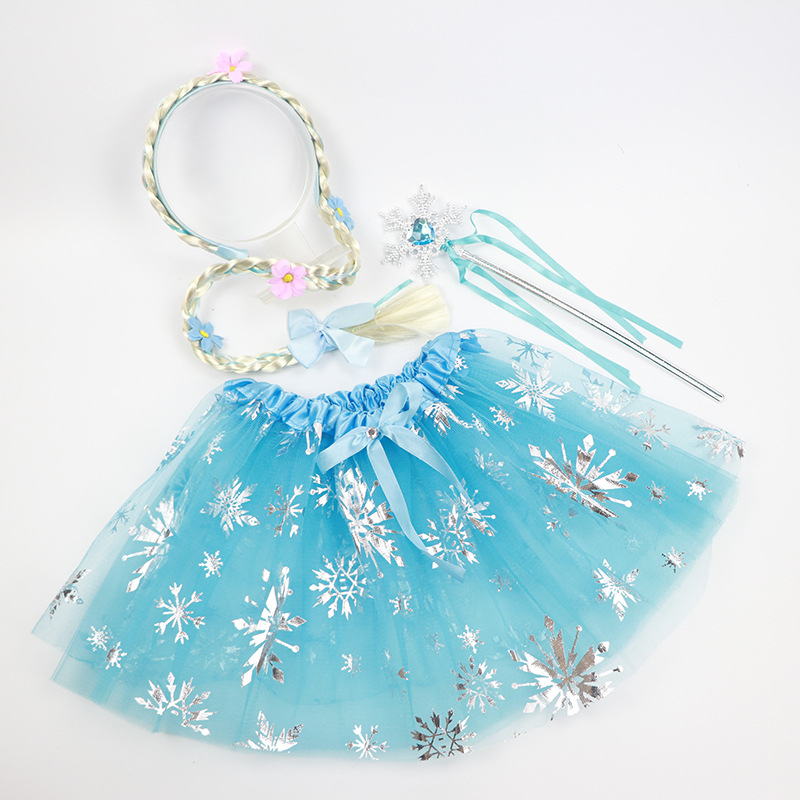 儿童冰雪奇缘tutu裙子套装假发头箍辫子皇冠套装爱莎公主发饰头饰