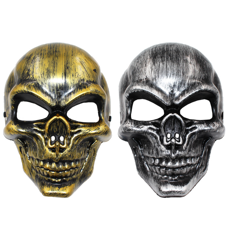 Masker Halloween, topeng kinerja, masker grimace menakutkan, masker tengkorak ajaib, masker wajah penuh, emas, perak