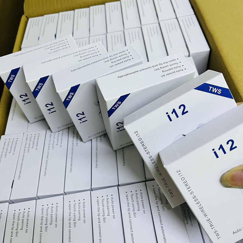 I12 headset nirkabel, headset i12 macaron Bluetooth nirkabel stereo sentuh binaural cocok otomatis untuk Apple Android