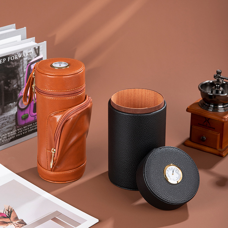 欧美跨境款男士真皮雪松木圆筒雪茄桶包复古多功能雪茄套雪茄烟包