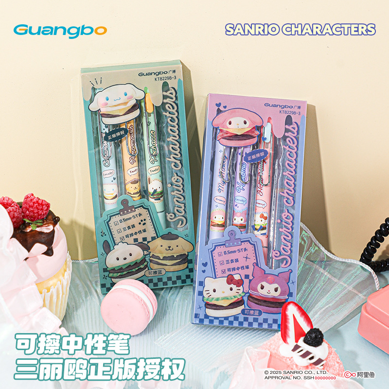 广博正版三丽欧汉堡系列可擦蓝按动中性笔卡通学生改错摩易擦笔