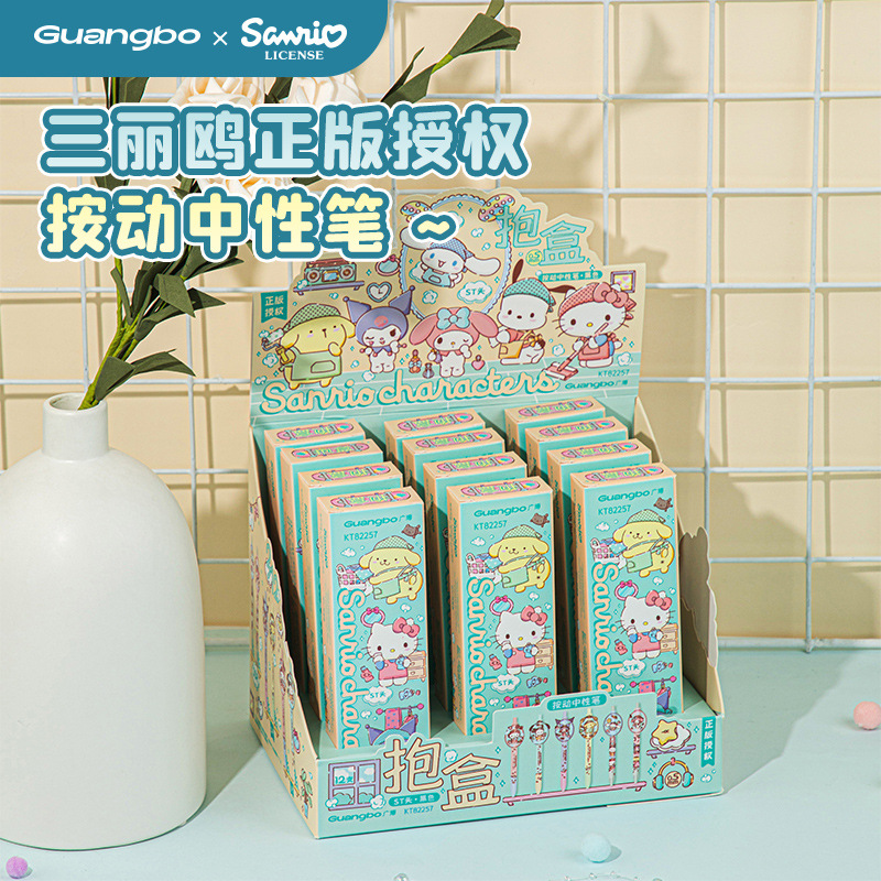 广博82257正版三丽鸥家族可爱卡通贴片按动中性笔书写黑0.5盲盒笔
